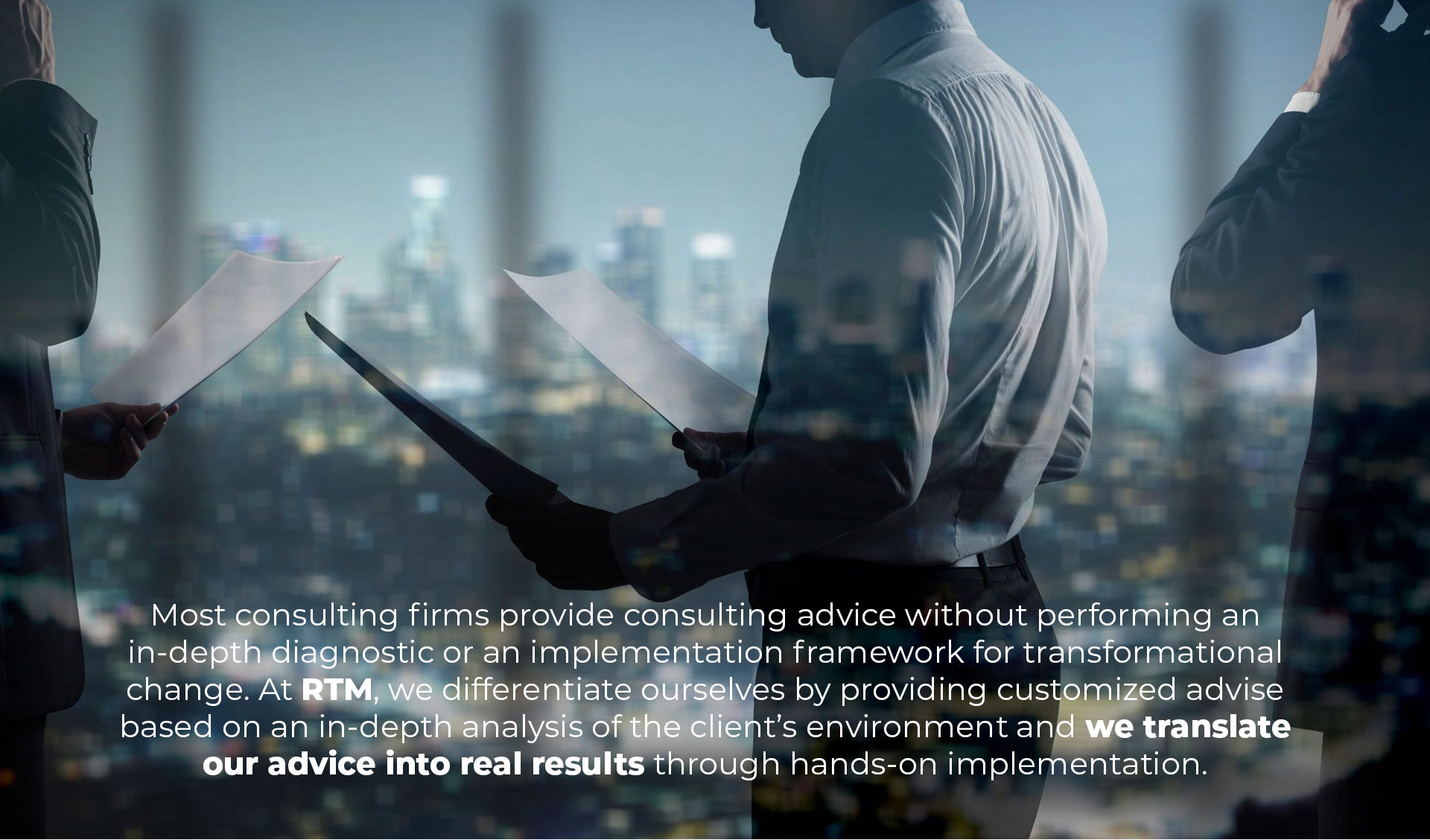 In the assessment phase, we undertake an in-depth diagnosis of your organization, its processes, people and technology. The reason why some consulting assignments don’t reach a transformational end is that the solutions presented are not directly relevant to the clients’ situation. Just as a correct medical diagnostic is crucial to prescribe the right treatment for a patient, an accurate assessment of the organization is a must to define an organization’s “pain” areas before starting to cater any solution.